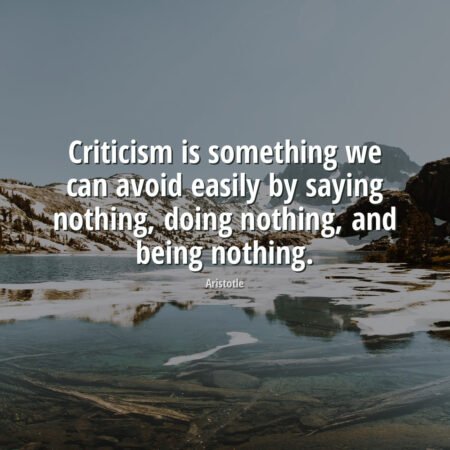 Criticism is something we can avoid easily by saying nothing, doing nothing, and being nothing. Aristotle