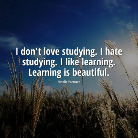 I don’t love studying. I hate studying. I like learning. Learning is beautiful. Natalie Portman